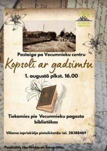 Vecumniekos 1. augustā plkst. 16 pastaiga pa Vecumnieku centri «Kopsolī ar gadsimtu».