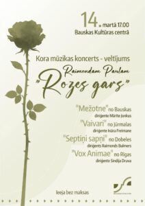 Bauskas Kultūras centrā 14. martā plkst. 17 kora mūzikas koncerts – veltījums Raimondam Paulam «Rozes gars».