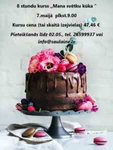 Kandavas lauksaimniecības tehnikuma Saulaines teritoriālajā struktūrvienībā 7. maijā plkst. 9 8 stundu kursi «Mana svētku kūka».