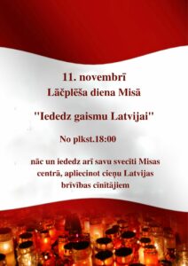 Misā 11. novembrī no plkst. 18 Lāčplēša diena «Iededz gaismu Latvijai!»