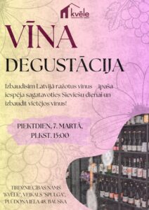 Veikalā «Spulga» Bauskā, Plūdoņa ielā 48, 7. martā plkst. 15, svinot Sieviešu dienu un baudot pavasara noskaņas, Latvijā ražotu vīnu degustācija.