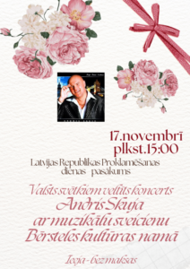 Bērsteles kultūras namā 17. novembrī plkst. 15 Latvijas Republikas proklamēšanas dienas pasākum kopā ar Andri Skuju.