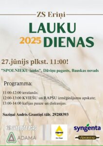 ZS «Eriņi» Spolnieku laukā Dāviņu pagastā 27. jūnijā plkst. 11 Lauku dienas 2025.