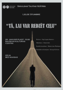 Bauskas kultūras centrā 29. janvārī plkst. 15 Leldes Stumbres lugas «Tā, lai var redzēt ceļu» (režisore Ārija Liepiņa – Stūrniece) iestudējums. Viesosies Siguldas Tautas teātris.
