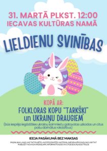 Iecavas kultūras namā 31. martā plkst. 12 Lieldienas kopā ar folkloras kopu «Tarkšķi» un ukraiņu draugiem.