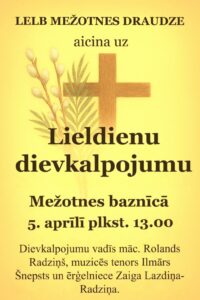 Mežotnes baznīcā 5. aprīlī plkst. 13 Lieldienu dievkalpojums.