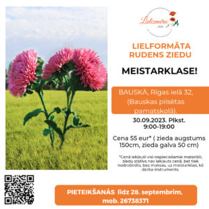 Bauskas pilsētas pamatskolā Rīgas ielā 32 30. septembrī no plkst. 9 līdz 19 lielformāta rudens ziedu meistarklase.