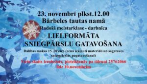 Bārbeles tautas namā 23. novembrī plkst. 12 radošā meistarklase – darbnīca lielformāta sniegpārslu gatavošanā.