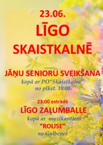 Skaistkalnē 23. jūnijā no plkst. 10 Jāņu senioru sveikšana kopā ar pūtēju orķestri «Skaistkalne», plkst. 23 estrādē Līgo zļumballe kopā ar muzikantiem «Rolise».