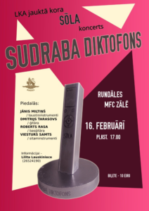 Rundāles multifunkcionālā centra zālē 16. februārī plkst. 17 LKA jauktā kora «Sōla» koncerts «Sudraba diktofons».