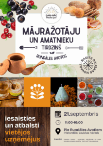 Rundāles pagastā, pie «Rundāles avotiem», 21. septembrī plkst. 11 mājražotāju un amatnieku tirdziņš.