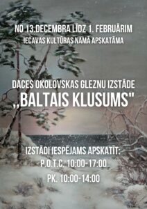 Iecavas kultūras namā no 13. decembra līdz 1. februārim mākslinieces Daces Okolovskas gleznu izstāde «Baltais klusums».