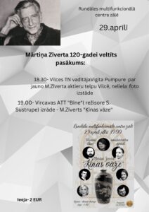 Rundāles multifunkcionālajā centrā 29. aprīlī plkst. 18.30 Mārtiņa Zīverta 120-gadei veltīts pasākums.