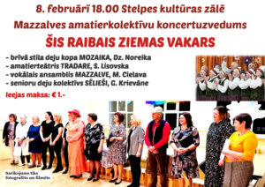 Stelpes kultūras zālē 8. februārī plkst. 18 Aizkraukles novada Mazzalves pagasta amatiermākslas kolektīvu koncerts.