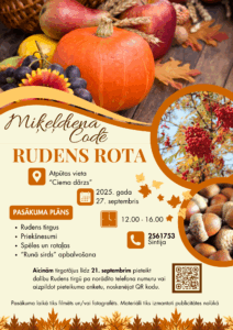 Codē, atpūtas vietā «Ciema dārzs», 27. septembrī no plkst. 12 līdz 16 Miķeldienas pasākums «Rudens rota».