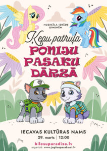 Iecavas kultūras namā 29. martā plkst. 12 muzikāla izrāde ģimenēm «Ķepu patruļa Poniju pasaku dārzā».