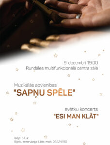 Rundāles multifunkcionālā centra zālē 9. decembrī plkst. 19 muzikālās apvienības «Sapņu spēle» svētku koncerts «Esi man klāt».