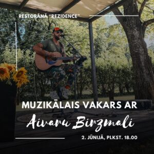 Restorānā «Rezidence» Pilsrundālē 2. jūnijā plkst. 18 muzikāls vakars ar Aivaru Birzmali.