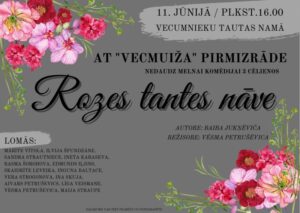 Vecumnieku tautas namā 11. jūnijā plkst. 16 amatierteātra «Vecmuiža» pirmizrāde nedaudz melnai komēdijai «Rozes tantes nāve».