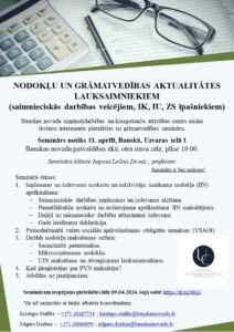 Bauskā, Uzvaras ielā 1, 11. aprīlī plkst. 10 seminārs «Nodokļu un grāmatvedības aktualitātes lauksaimniekiem».
