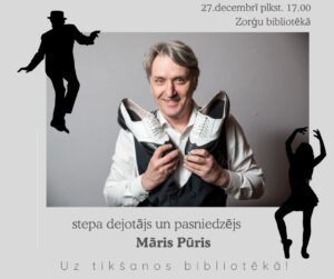 PĀRCELTA!!! Zorģu bibliotēkā 3. janvārī pulksten 17 tikšanās ar stepa dejotāju, pedagogu un aktieri Māri Pūri.