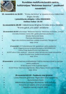 Rundāles multifunkcionālā centra kultūrtelpas «Mežotnes baznīca» pasākumi novembrī: