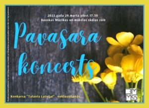 Bauskas mūzikas un mākslas skolas zālē 29. martā plkst. 17.30 pavasara koncerts.