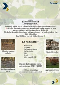 Kaucmindes pilī 22. martā no plkst. 11 līdz 15 Lielā pavasara talka – muižas parka sakopšana, atjaunošana un labiekārtošana. Dalībnieki aicināti ņemt līdzi darba rīkus. Pēc talkas būs saviesīgā daļa! .