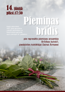 Bauskā, Brīvības bulvārī, pie represēto piemiņas ansambļa 14. jūnijā plkst. 17.30 piemiņas brīdis ar koklētājas Dainas Ārmanes piedalīšanos.