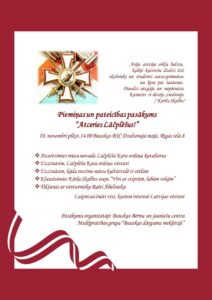 Bauskas jauniešu centra Dzeltenajā mājā (Rīgas ielā 8) piemiņas un pateicības pasākums «Atceries Lāčplēšus!» 10.novembrī plkst. 14.