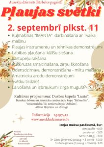 Bārbeles pagasta «Ausekļu dzirnavās» 2. septembrī plkst. 11 Pļaujas svētki.