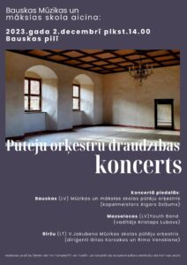 Bauskas pilī 2. decembrī plkst. 14 pūtēju orķestru draudzības koncerts.