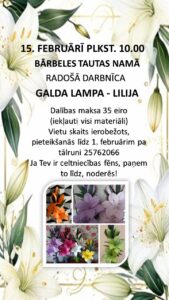 Bārbeles tautas namā 15. februārī plkst. 10 radošā darbnīca «Galda lampa – lilija».