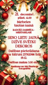 Bārbeles tautas namā 21. decembrī plkst. 14 radošā darbnīca-meistarklase «Seno lietu jaunā dzīve svētku dekoros».