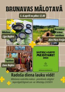 Brunavas mālotavā 5. un 6. aprīlī no plkst. 12 līdz 18 «Satiec savu meistaru» – radoša diena lauku vidē: mālošana ar Līgu Bajāri, tapošana ar Zani Bajāri, Āra maizes krāsns mūrēšana ar Airu Puci-Freiju.