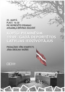 Bauskā, Brīvības bulvārī, pie represēto piemiņas ansambļa 25. martā plkst. 16.30 piemiņas pasākums, pieminot 1949. gadā deportētos Latvijas iedzīvotājus.