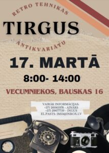 Vecumnieku tirgus laukumā 17. martā plkst. 8 – 14 retro tehnikas un antikvariāta tirgus.