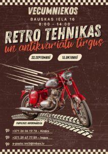 Vecumnieku tirgus laukumā 22. septembrī un 13. oktobrī no plkst. 8 retro tehnikas un antikvariāta tirgus.