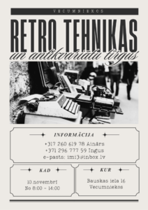 Vecumnieku tirgus laukumā 10. novembrī plkst. 8 retro tehnikas un antikvariāta tirgus.