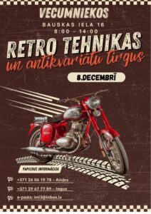 Vecumnieku tirgus laukumā 8. decembrī plkst. 8 Retro tehnikas un antikvariāta tirgus.
