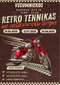 Vecumnieku tirgus laukumā 13. jūlijā plkst. 8 retro tehnikas un antikvariāta tirgus.