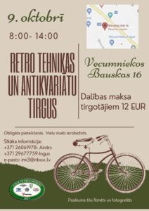 Vecumnieku tirgus laukumā 9. oktobrī plkst. 8 retro tehnikas un antikvariāta tirgus.
