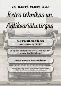 Vecumnieku tirgus laukumā 20. martā Retro tehnikas un antikvariāta tirgus.