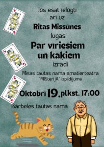 Bārbeles tautas namā 19. oktobrī plkst. 17 Ritas Missūnes luga «Par vīriešiem un kaķiem».