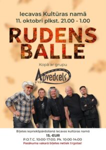 Iecavas kultūras namā 11. oktobrī plkst. 21 –1 rudens balle kopā ar grupu «Apvedceļš».