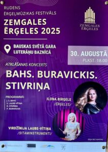 Bauskas Svētā Gara luterāņu baznīcā 30. augustā plkst. 18 rudens ērģeļmūzikas festivāls «Zemgales ērģeles 2025» – atklāšanas koncerts «Bahs. Buravickis. Stivrina».