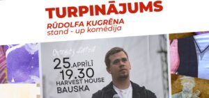 Restorānā «Harvest House» Bauskā 25. aprīlī plkst. 19.30 Rūdolfa Kugrēna stand-up komēdija «Turpinājums».