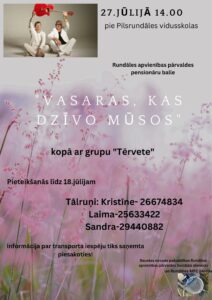 Pie Pilsrundāles vidusskolas 27. jūlijā plkst. 14 Rundāles apvienības pārvaldes pensionāru balle kopā ar grupu «Tērvete».