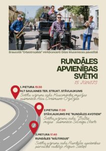 Rundāles apvienības svētki 15. jūnijā – braucošā «Orķestropēda» mirkļkoncerti Gitas Mucenieces pavadībā: 1. pietura plkst. 15.30 Saulaines teritoriālās struktūrvienības stāvlaukumā (svetku uzrunu saka Kaucmindes muižas saimniece Aiva Dreimane-Ozolzīle), 2. pietura plkst. 17 stāvlaukumā pie «Rundāles avotiem» (svētku uzrunu saka «Baltās mājas» saimniece Solveiga Ikerte), 3. pietura plkst. 17.40 Rundāles «Mājtirgū» (svētku uzrunu saka Rundāles apvienības pārvaldes vadītājs Aigars Sietiņš), plkst. 19 Rundāles multifunkcionālā centra kultūras zālē Laimja Rācenāja un viņa draugu koncerts.