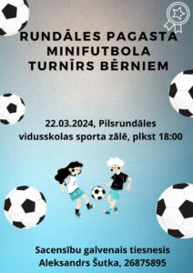 Pilsrundāles vidusskolas sporta zālē 22. martā plkst. 18 Rundāles pagasta minifutbola turnīrs bērniem.